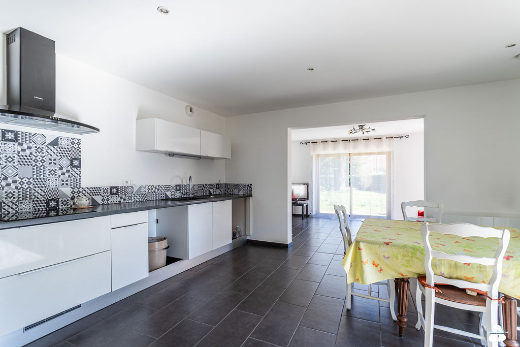 Implantée sur un terrain plat et arboré de 1 194 m2, la propriété développe 212 m2 habitables actuellement répartis en deux appartements duplex rénovés.